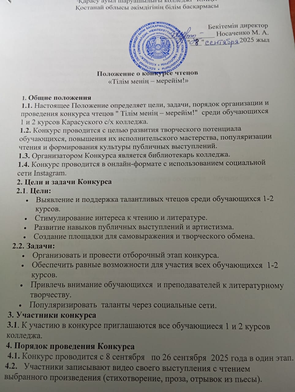 Қарасу ауыл шаруашылығы колледжі "Тілім менің – мерейім" мәнерлеп оқу байқауы "Балалар кітапханасы" жобасын іске асыру аясында жариялайды!" 1 және 2 курс студенттері арасында.