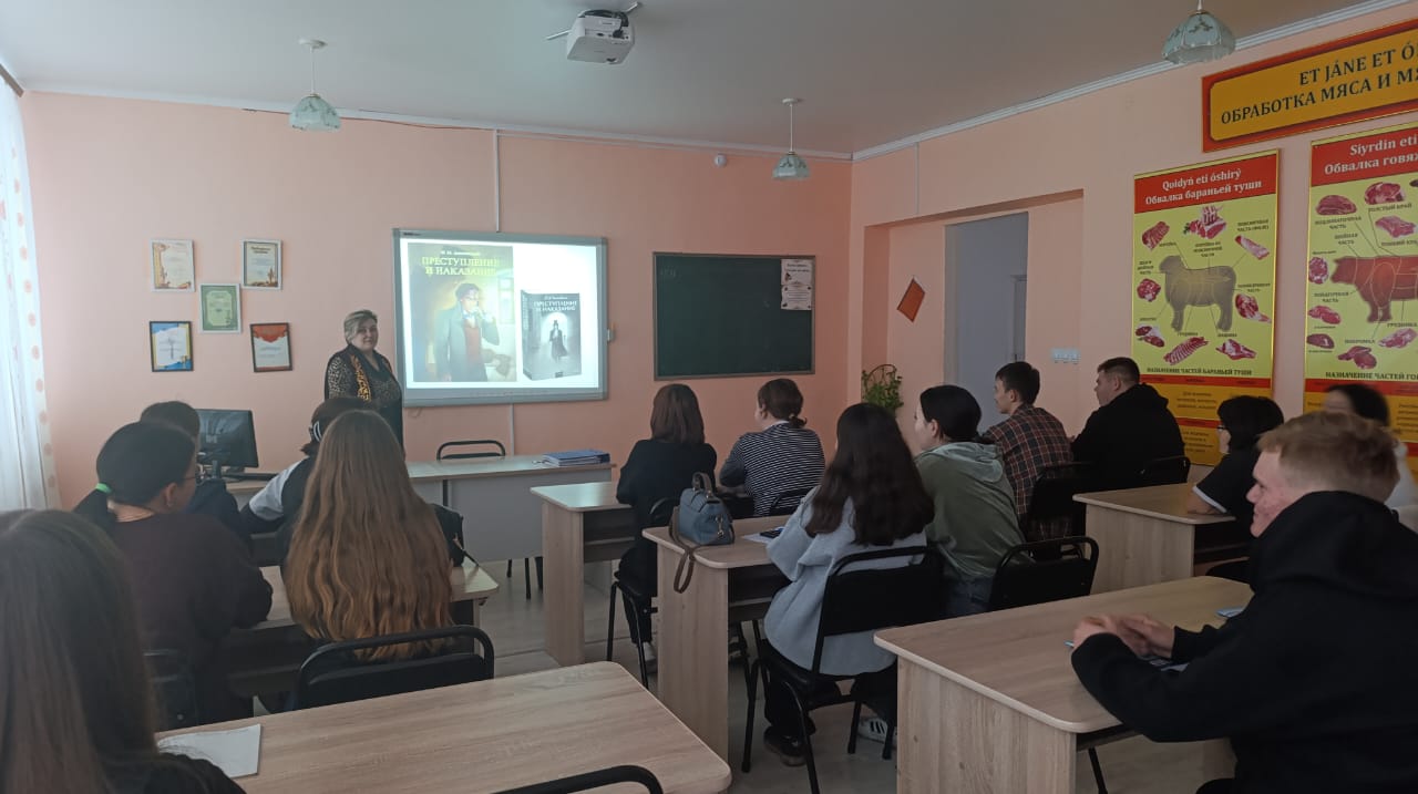"Заң және тәртіп" жоспарына сәйкес П - 24 тобының "тамақтандыруды ұйымдастыру" мамандығы бойынша топ кураторы А. Н. Недайборщ "қылмыстар мен жазалар" сыныптан тыс іс - шарасын өткізді - ненің дұрыс, ненің дұрыс емес? Ф.м. Достоевскийдің романының мысалында.