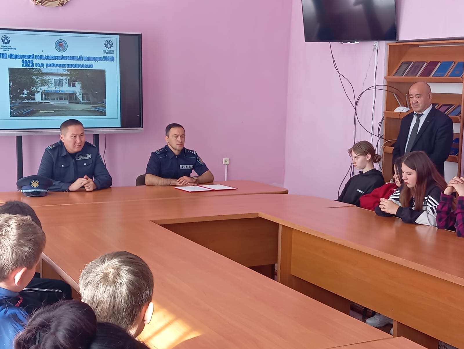 2025 жылғы 13 қазанда "Қарасу ауыл шаруашылығы колледжі" КМҚК Қарасу аудандық полиция бөлімінің бастығы Е. А. Жилиспаевпен және Қарасу аудандық полиция бөлімі бастығының орынбасары В. А. Итесовпен 1 курс білім алушыларымен "кәмелетке толмағандар арасындағы құқық бұзушылықтардың алдын алу" және "тұрмыстық зорлық-зомбылықтың алдын алу"тақырыбында профилактикалық әңгіме өткізілді